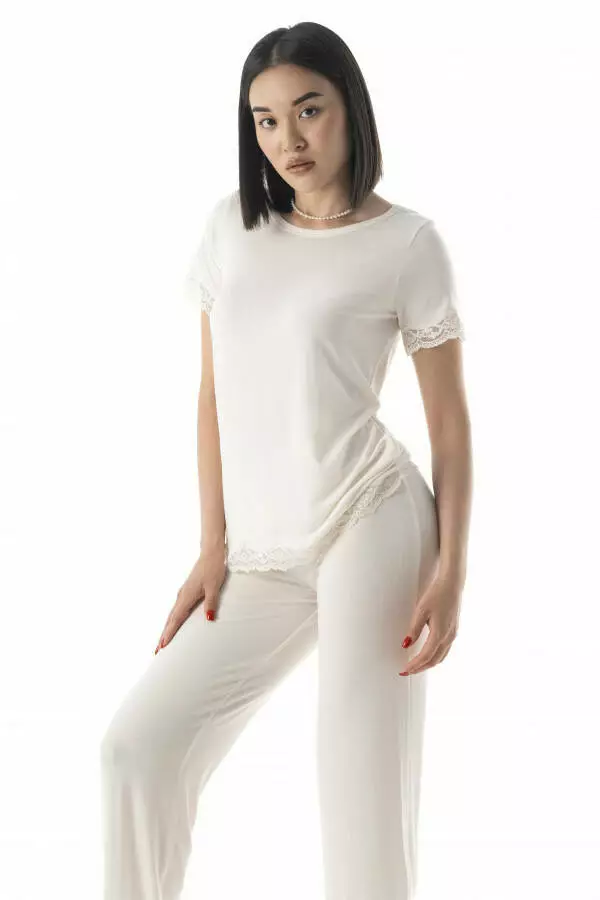 Футболка жіноча для сну модал з мереживом