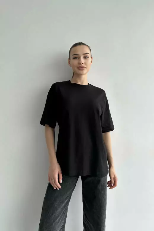 Ця базова жіноча футболка - ідеальний варіант для комфортного та стильного образу. Виготовлена з трикотажу, вона гарантує ніжний контакт зі шкірою. Натуральна тканина пропускає повітря, також приємна до тіла, не кошлатиться та зручна для носіння на кожен день. Вільний крій з круглим вирізом роблять цю футболку універсальною для різних образів. Доповніть свій гардероб цією стильною та практичною базовою футболкою для бездоганного повсякденного вигляду