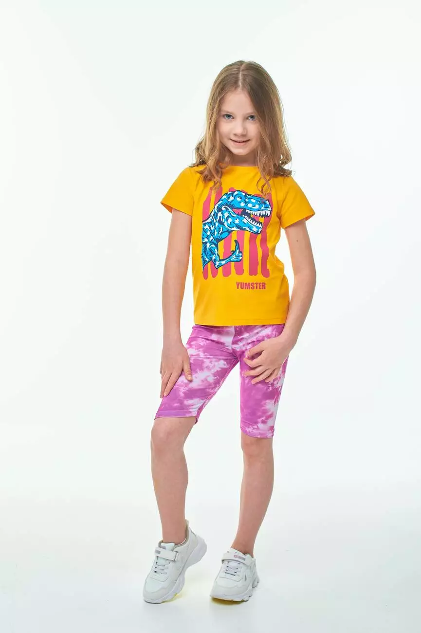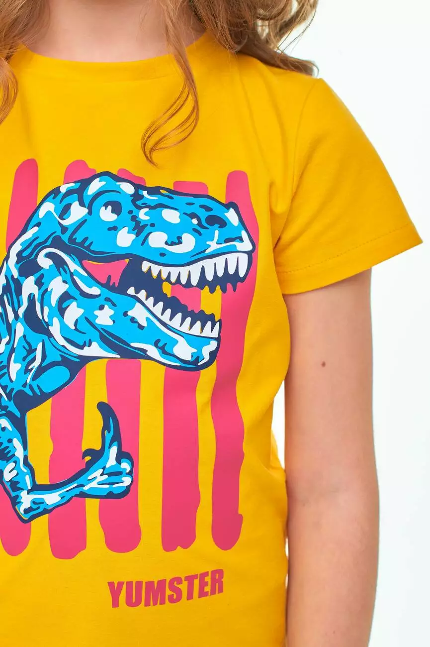 Кругла горловина. Короткий рукав. На грудях принт Динозавр. Фасон