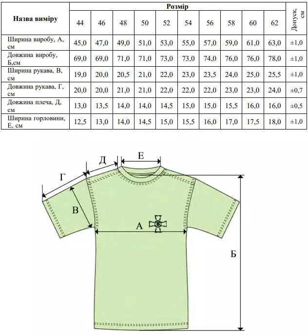 Розміри: 44, 46, 48, 50, 52, 54, 56, 58, 60, 62.