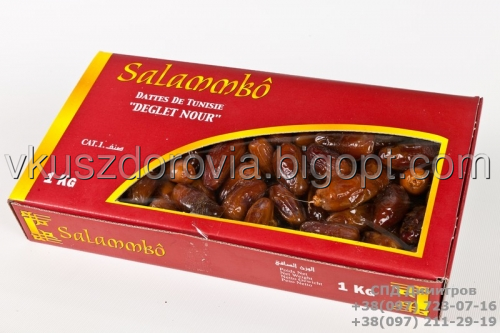 Финики SALAMBO выращен в Тунисе и расфасован в удобную упаковку по 1кг.