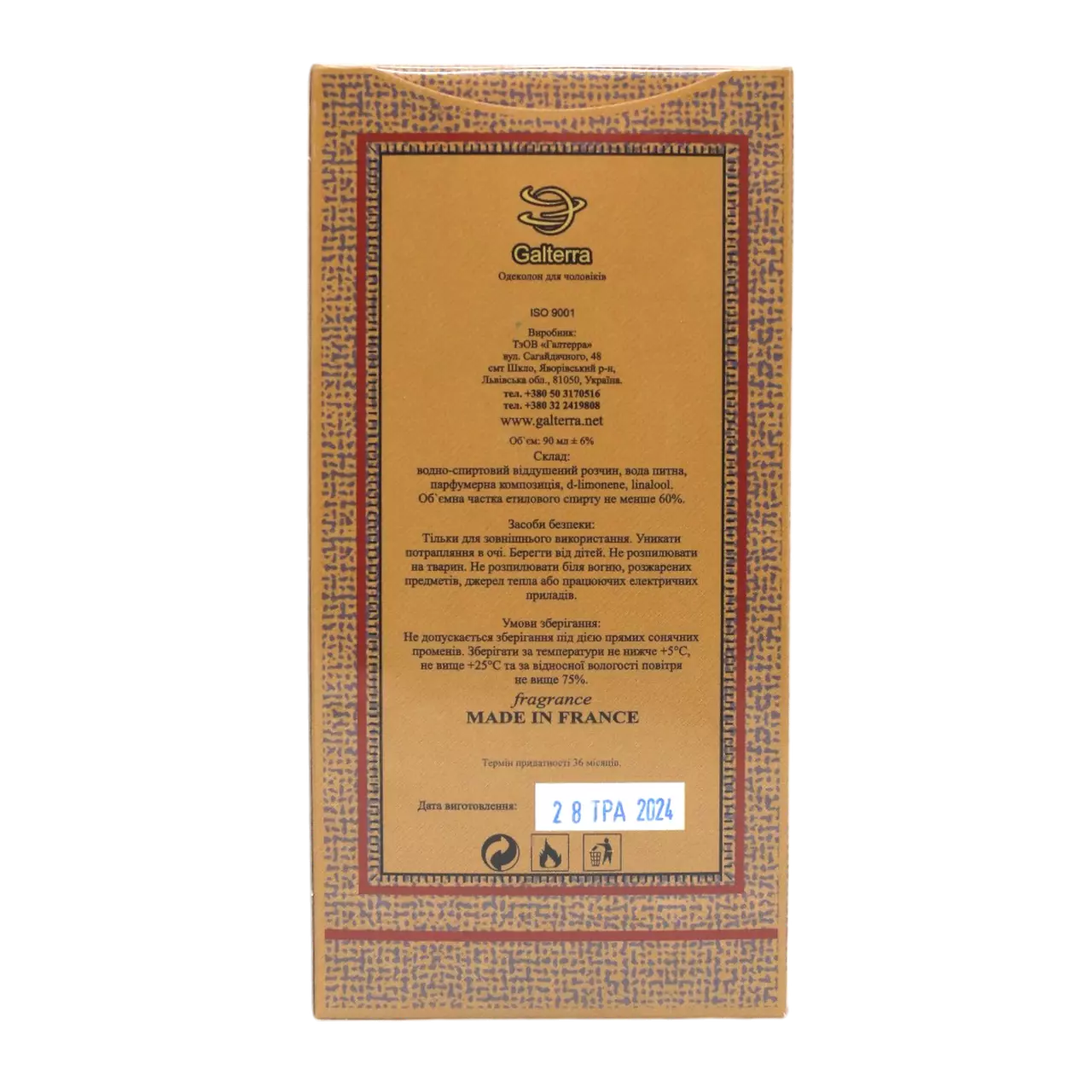 Одеколон Galterra "Ell Passo Texas" має яскравий і теплий аромат,