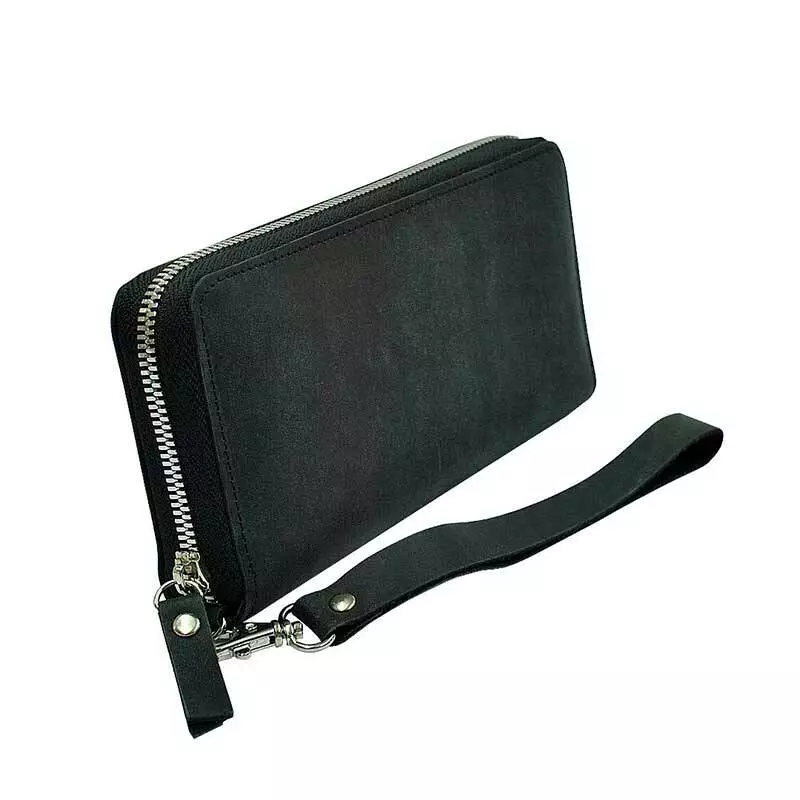 Шкіряний жіночий гаманець на блискавці чорного