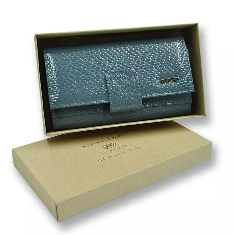 Шкіряний жіночий гаманець упакований у крафтову коробку ручної