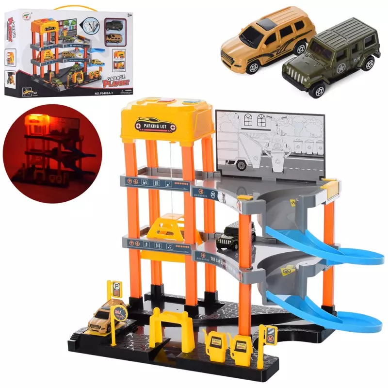 Гараж P9488A-1 3 поверхи, 21,5-36,5-29,5 см., ліфт, машинки 2 шт., бат., кор., 41-31-9 см.