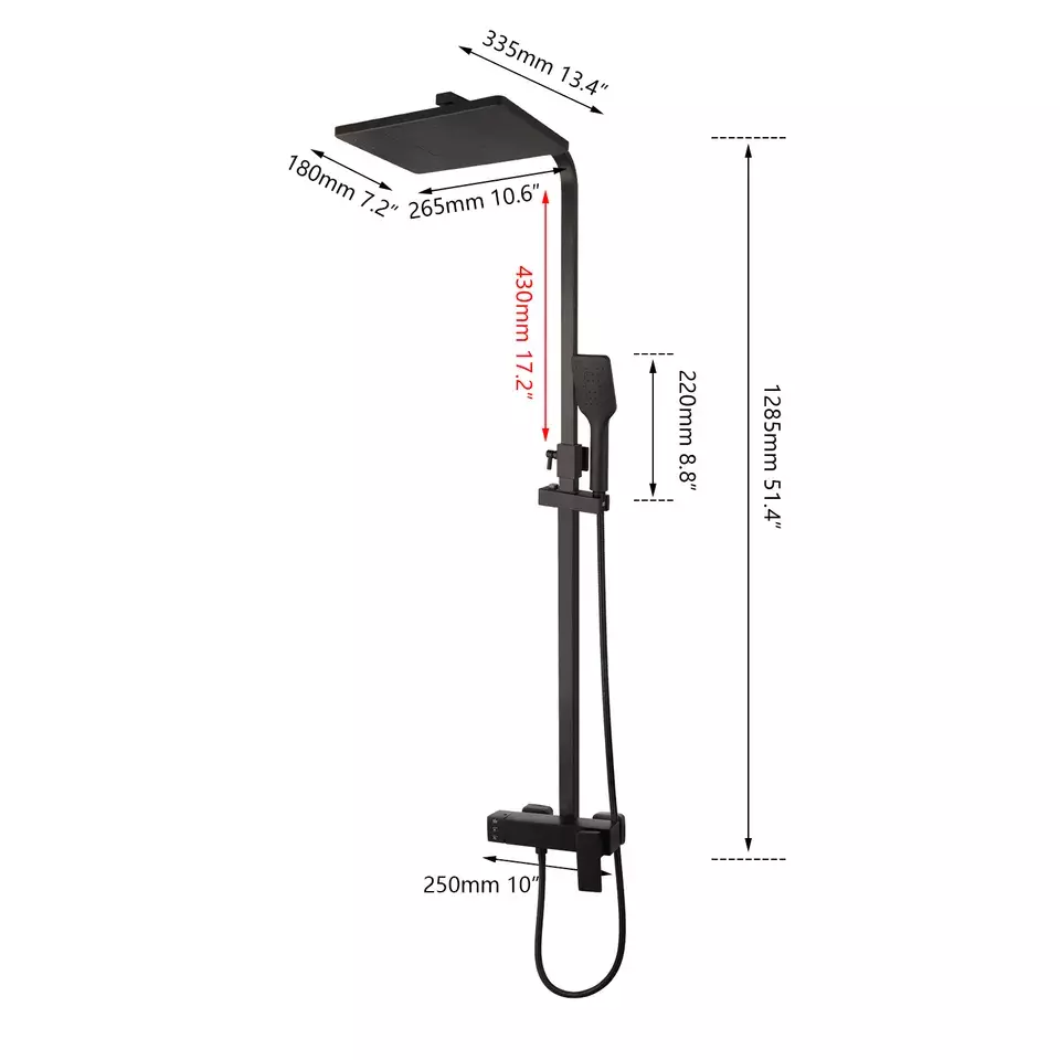 Насадка для тропічного душу: 10,6” * 7,2” (265 мм x 180 мм).