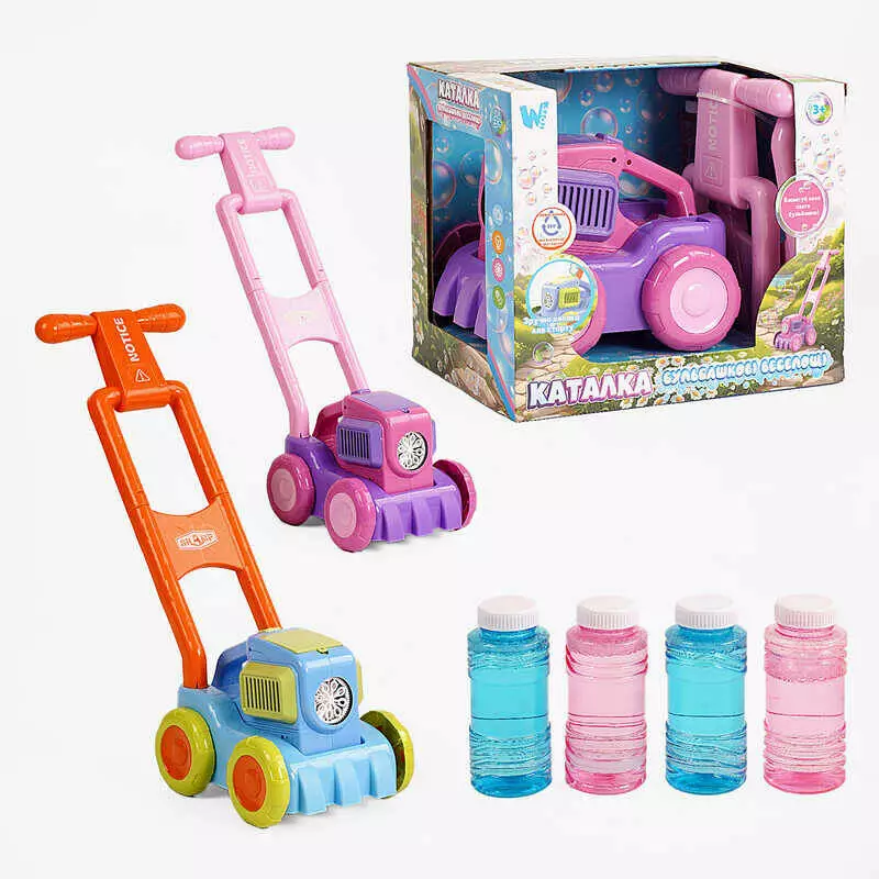Газонокосарка з мильними бульбашками 26061 (36/2) "WToys", 2 кольори, висота 43см, підсвічування, 2 пляшечки з мильним розчином, в коробці