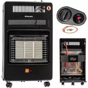 В газовом обогревателе Riwall 4200W газ сжигается на керамических пластинах, которые дополнительно нагреваются для излучения дополнительного тепла.