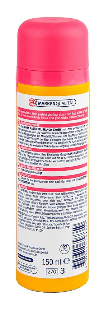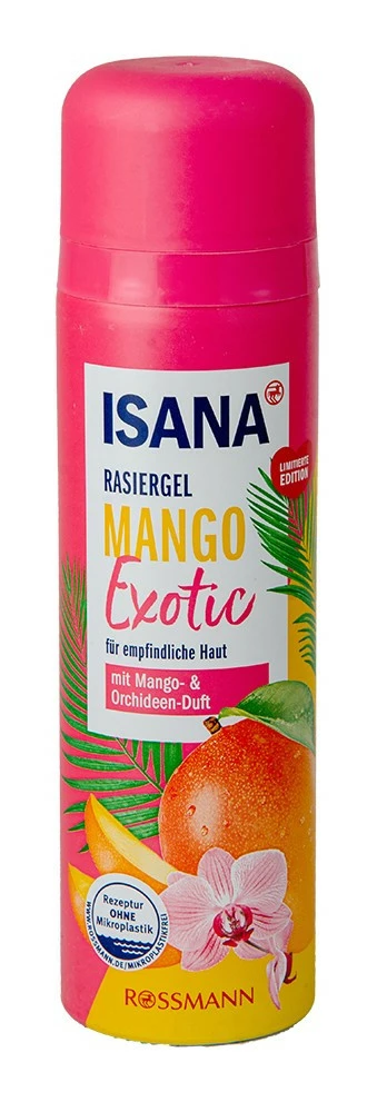 Гель для гоління Isana Mango з екзотичним запахом манго й орхідеї.