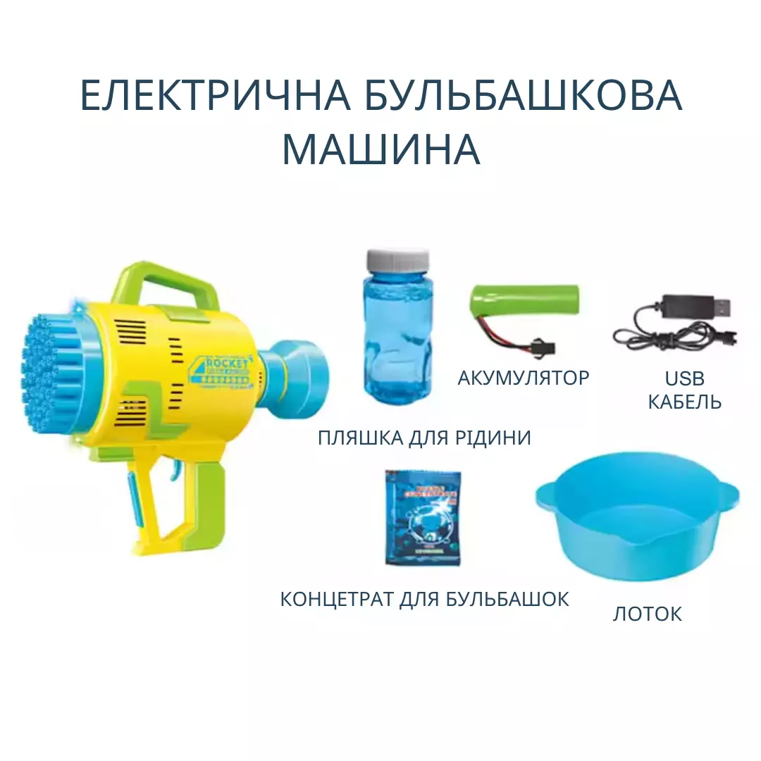 Комплектація: генератор бульбашок, акумулятор, зарядний кабель,