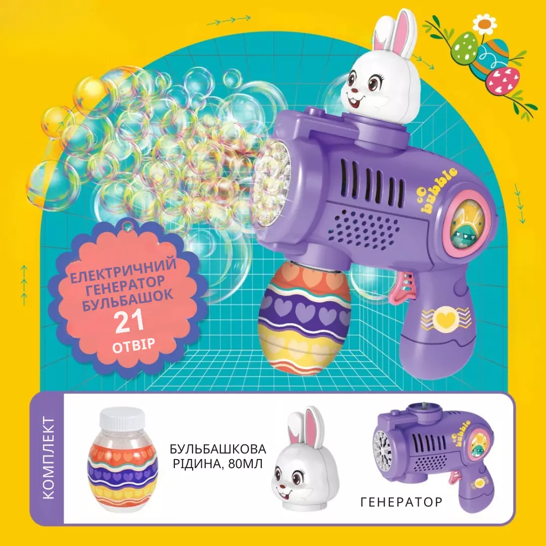 бульбашок! Іграшка оснащена 21 отвором, випускаючи сотні бульбашок
