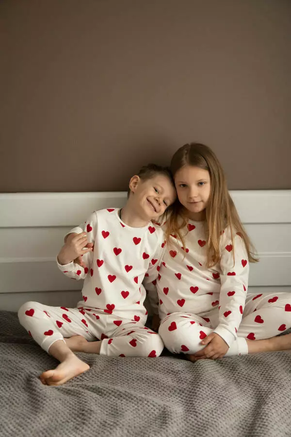 Принт з червоними сердечками надає комплекту святкового та позитивного вигляду, створюючи відчуття тепла та затишку. Така піжама стане невід'ємною частиною вечірнього ритуалу, занурюючи вашу дитину в атмосферу комфорту та спокою.