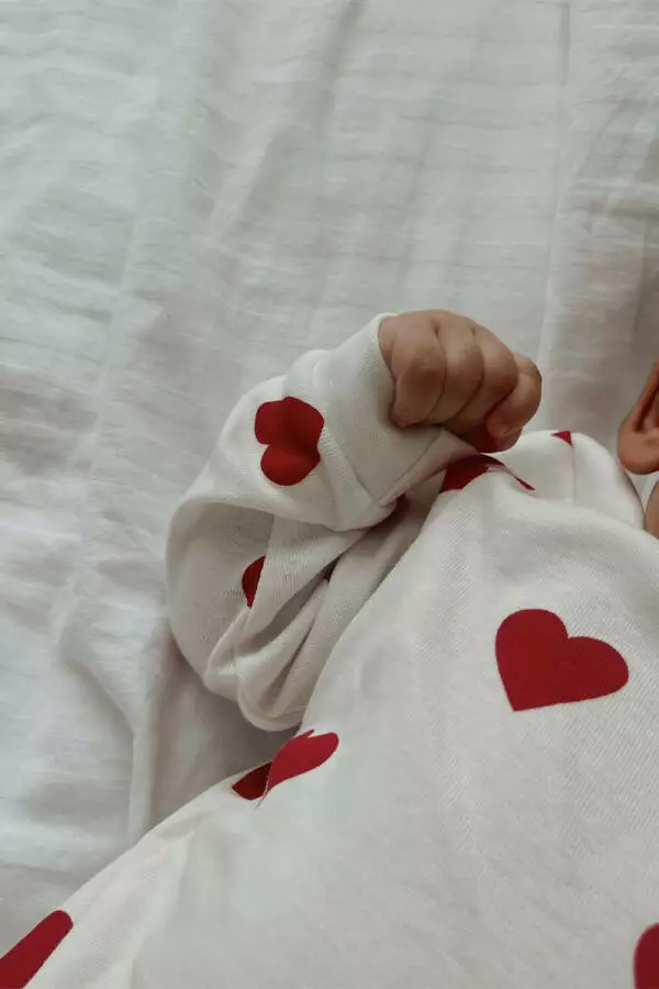 Дитяча піжама з регланом та брюками, прикрашена принтом у вигляді червоних сердець, — це ідеальний вибір для затишного та комфортного сну вашого малюка. Цей комплект виконаний з м'якого та дихаючого матеріалу, що забезпечує комфортне прилягання до тіла, не викликаючи подразнень та створюючи умови для здорового сну. Ніжний дизайн з яскравими сердечками надає піжамі грайливого та милиго вигляду, який сподобається як дітям, так і батькам.
