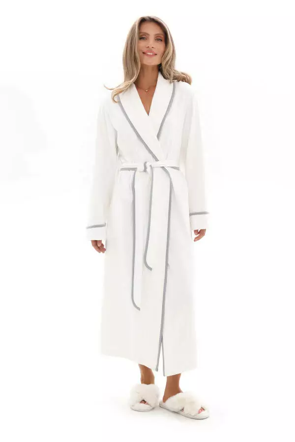 Неймовірно м’який і комфортний халат, практичний, стильний і приємний до тіла – стане улюбленою частиною вашого домашнього гардеробу. Халат виготовлений із сертифікованої органічної бавовни за стандартом OCS. Сировина вирощена без використання штучних добрив, пестицидів і ГМО, а виробництво повністю відстежується – від джерела до готового виробу