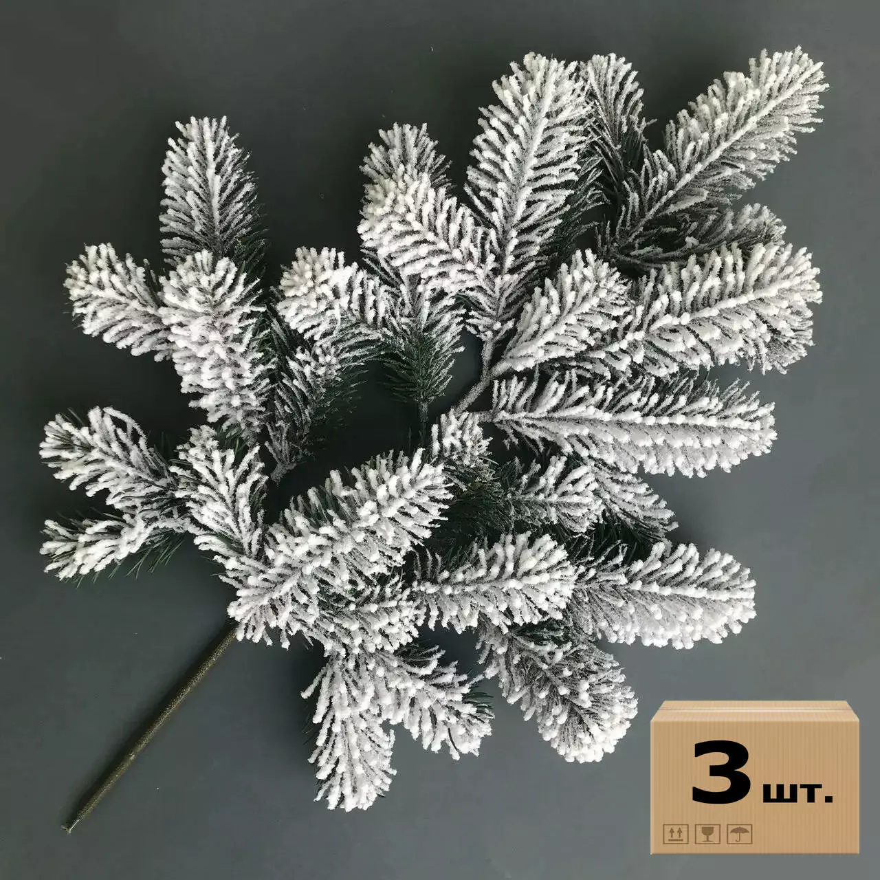 Гілка хвойна Premium лита 53 см зелена засніжена (упаковка 3 шт.)