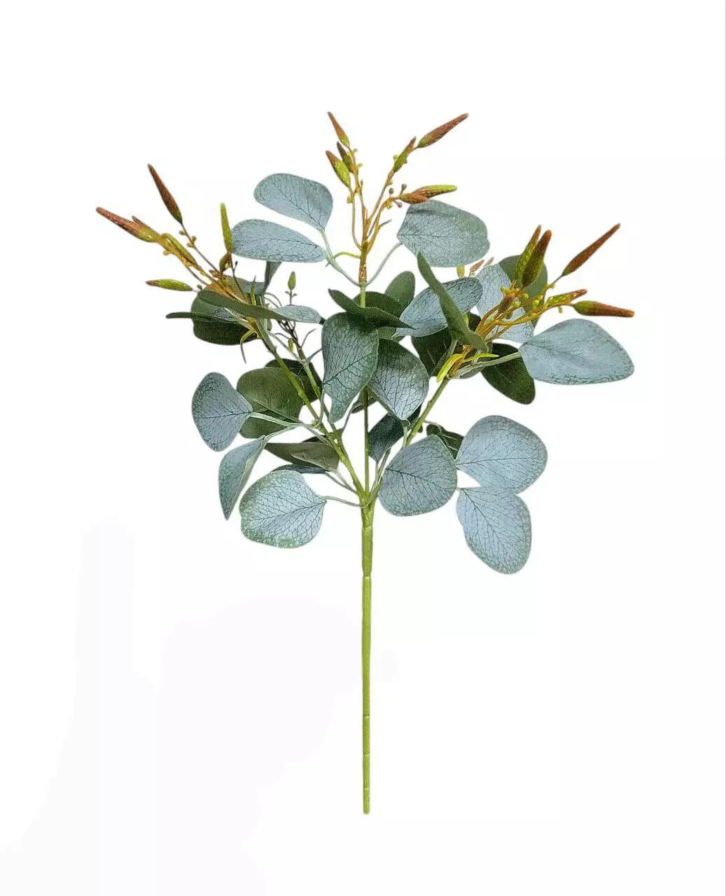 Гілка штучна евкаліпта з шовку на 5 гілок, висотой 41 см. В прозорій фабричній упаковці зібрано 5 шт.