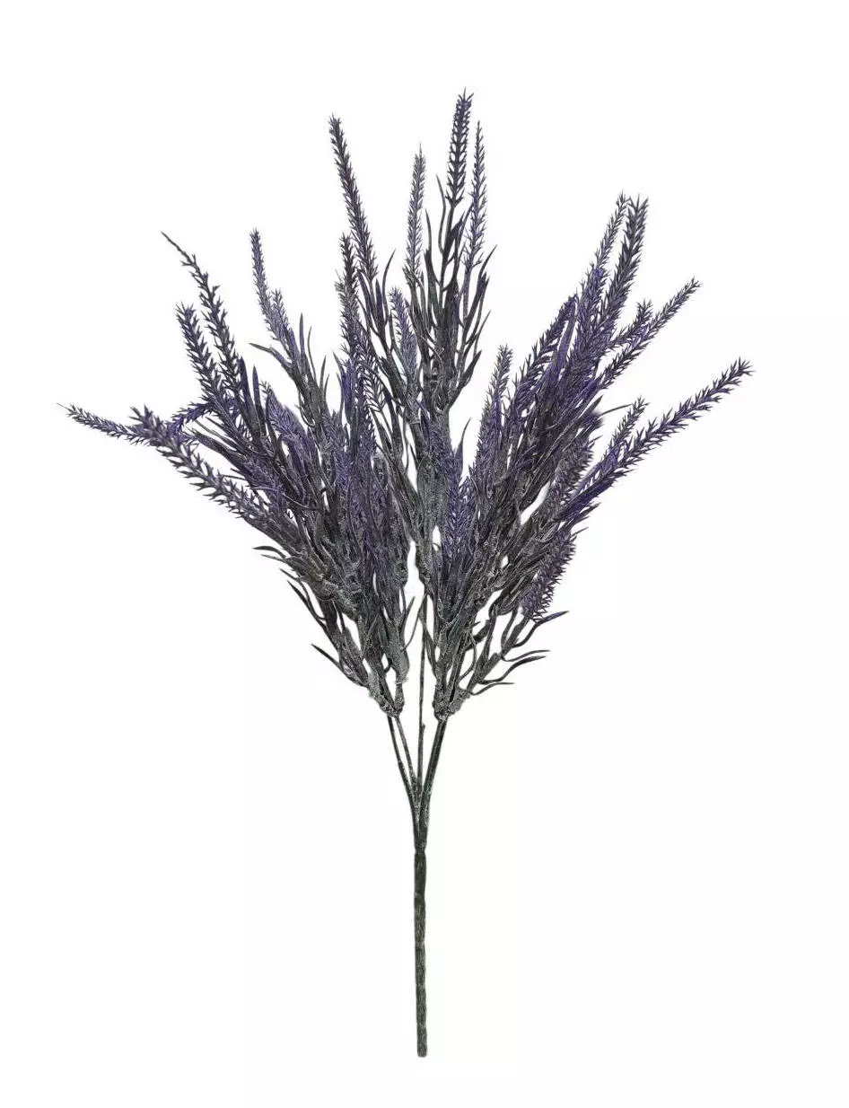 Штучна гілка лаванди з пластмаси, висотою 38 см. У прозорій фабричній упаковці зібрано 5шт.