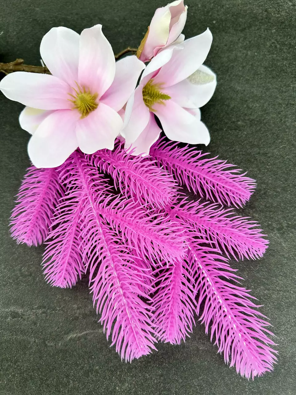 Цей насичений холодний рожевий відтінок миттєво привертає увагу та створює незабутній візуальний ефект. Гілочка стане справжнім акцентом у фотозоні, святковому оформленні, вітрині магазину чи новорічній композиції. Її обирають ті, хто не боїться виділятись.