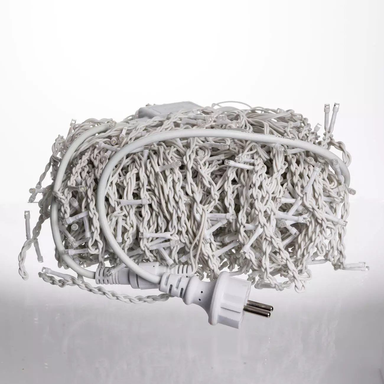 Гірлянда «Бахрома» з 600 LED лампочками створює атмосферне освітлення для зовнішнього або внутрішнього декору. Довжина основного шнура становить 36 метрів, що дозволяє прикрашати фасади будинків, вікна, балкони, альтанки чи вітрини. Завдяки білій нитці гірлянда непомітна вдень і виглядає акуратно при монтажі, а в темний час доби рівномірно розсіює світло, створюючи святкову ілюмінацію.