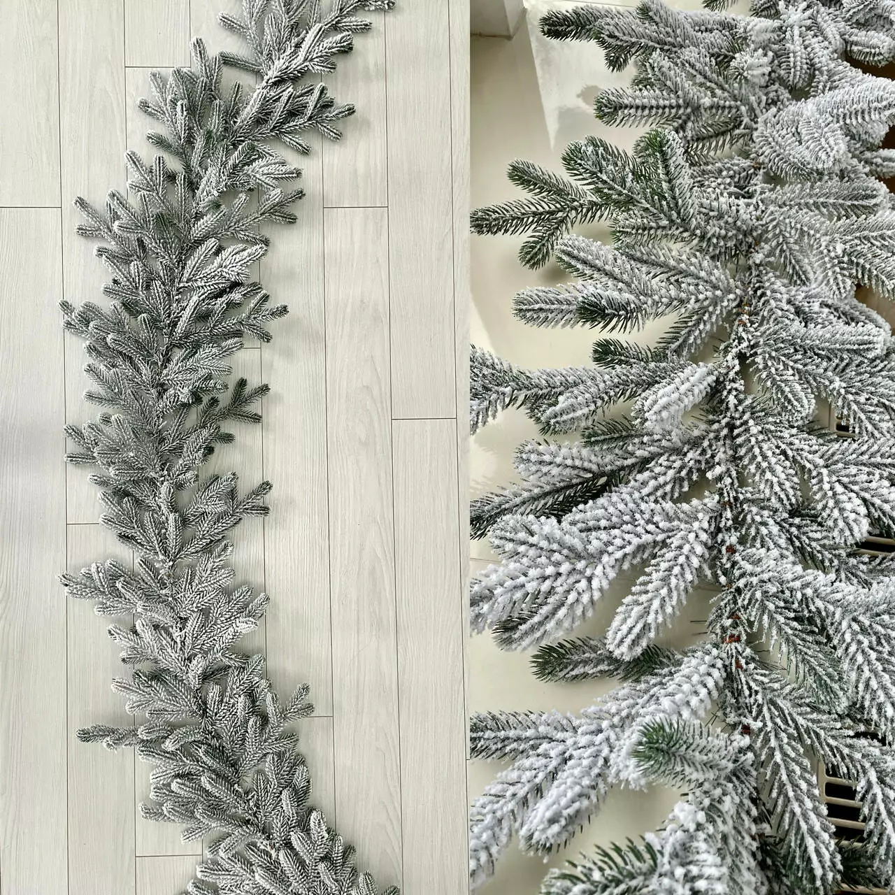 Хвойная гирлянда изготовлена путём переплетения искусственных еловых веточек. Все ветки и иголочки - 100% литые, они выглядят, как хвоя живой ёлки, но более мягкие и не колючие. Объемное густое напыление реалистично имитирует снег, только что упавший на ветки пушистыми хлопьями. Материалом распыления является натуральный хлопок, он экологичен и не имеет запаха, безопасен для детей и взрослых.