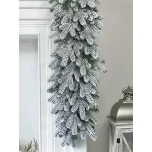Хвойная гирлянда изготовлена путём переплетения искусственных еловых веточек. Все ветки и иголочки - 100% литые, они выглядят, как хвоя живой ёлки, но более мягкие и не колючие. Объемное густое напыление реалистично имитирует снег, только что упавший на ветки пушистыми хлопьями. Материалом распыления является натуральный хлопок, он экологичен и не имеет запаха, безопасен для детей и взрослых.