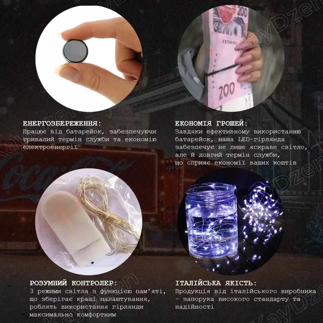использованию батареек, наша LED-гирлянда обеспечивает не только