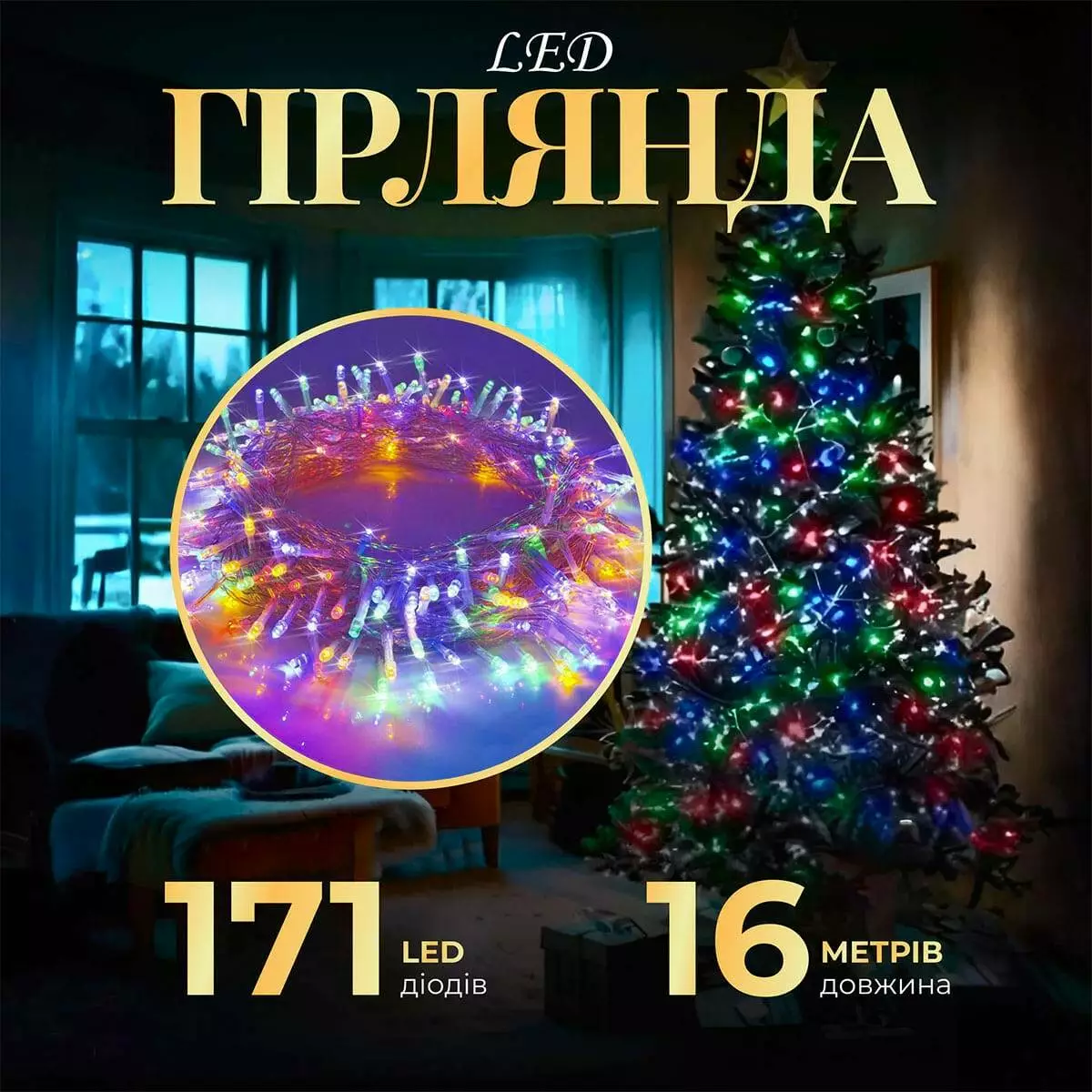 - Легкий монтаж: Гірлянду легко і просто закріпити на будь-якій