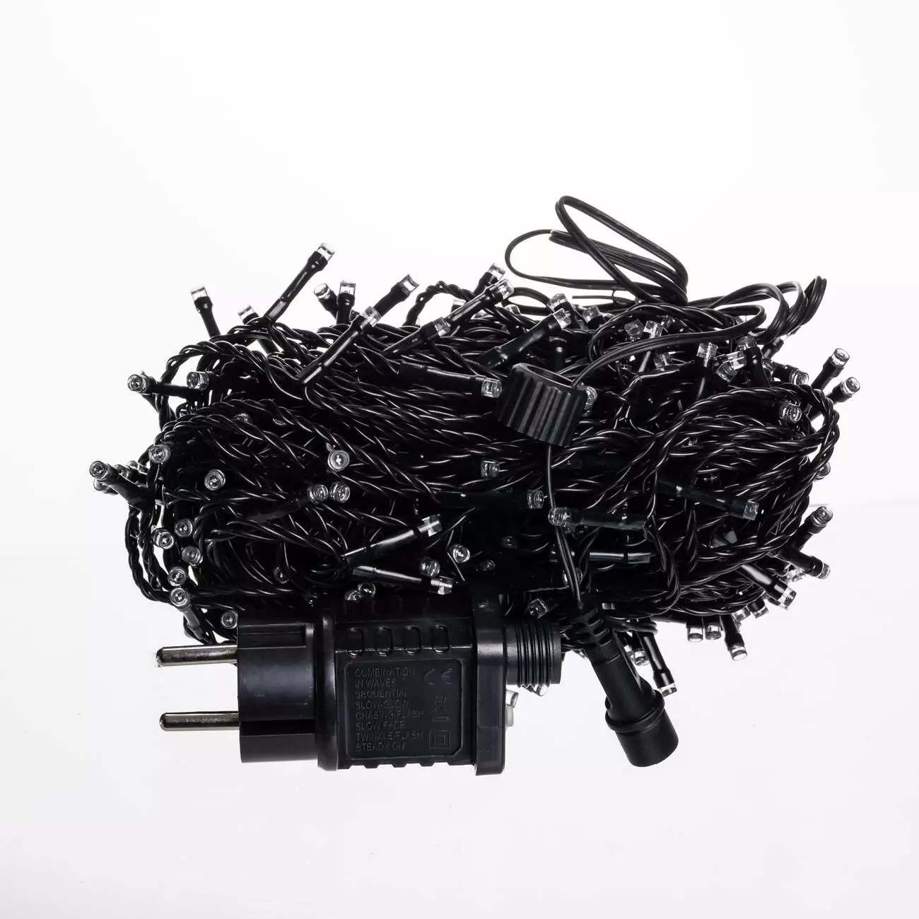 Гірлянда працює від мережі, що забезпечує стабільне світіння без потреби у підзарядці. Відстань від вилки до першої лампочки становить 1,9 м, а між лампочками — 9 см, завдяки чому створюється щільне, рівномірне світло без затемнень. Оснащена 8 режимами світіння, які перемикаються механічно, гірлянда дозволяє налаштувати потрібну динаміку освітлення — від спокійного сяйва до миготіння.