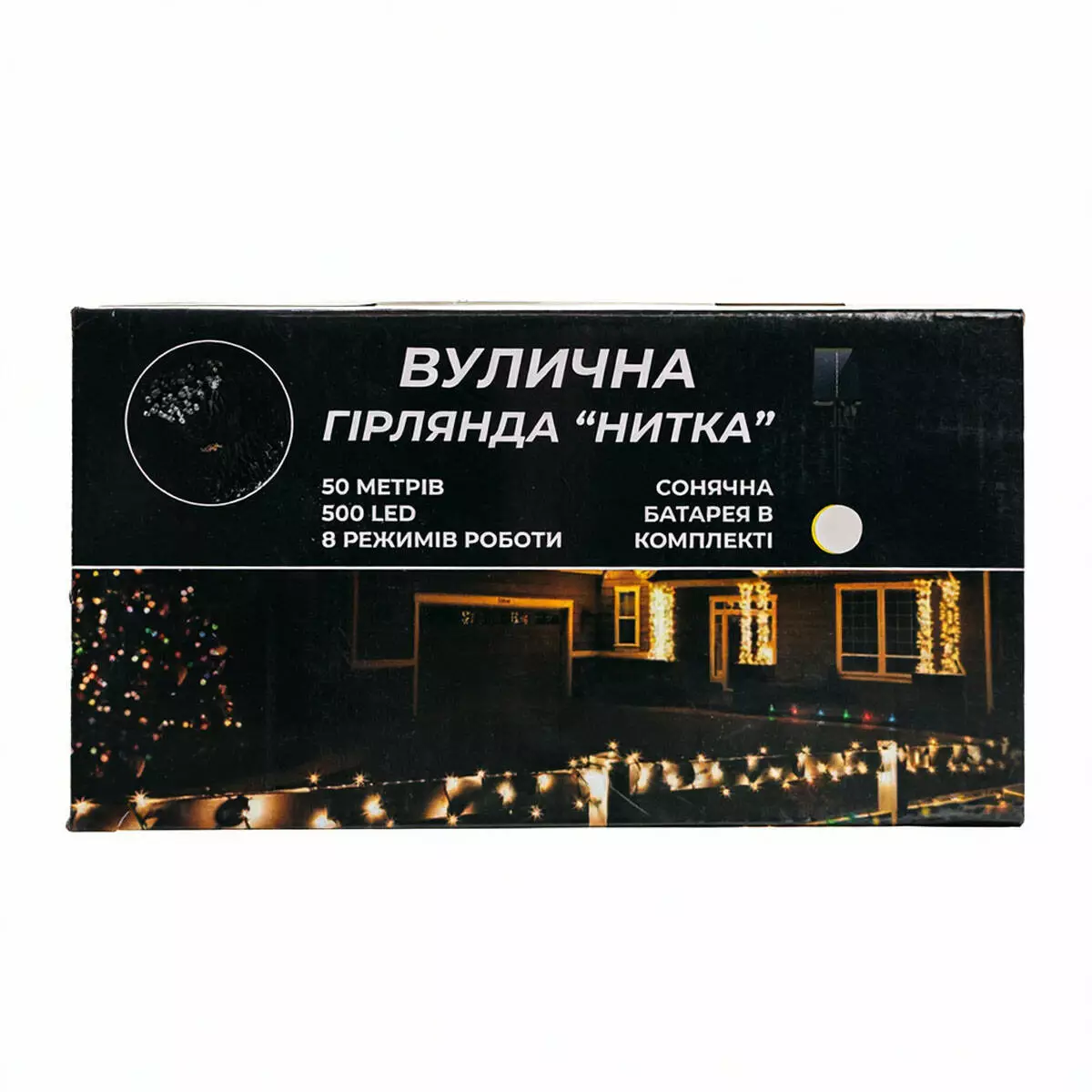 Гірлянда Нитка вулична 500 LED 50 м на сонячній батареї чорна, білий