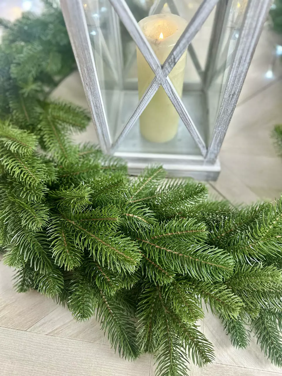Довжина гірлянди становить 2 метри, а у розправленому вигляді її ширина — близько 30 см, що дозволяє використовувати її як самостійну прикрасу або як основу для святкових композицій. Вона гнучка та добре тримає форму, тому легко підходить для декору камінних полиць, столів, перил, вхідних зон, полиць, фотолокацій і тематичних оформлень.