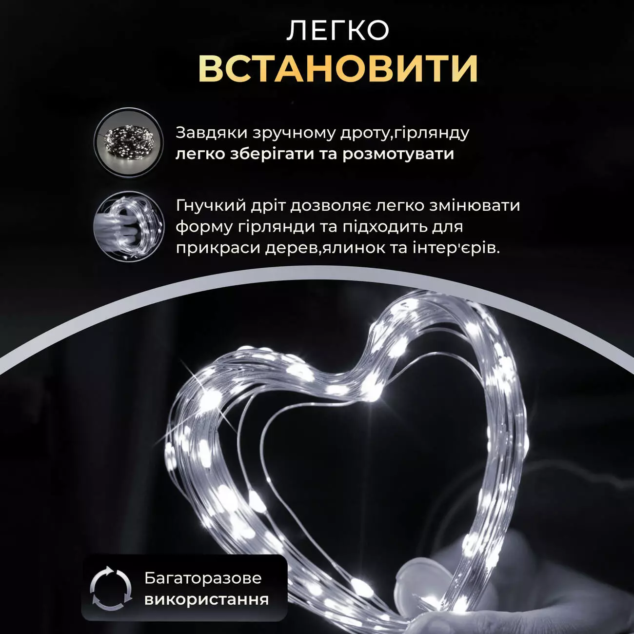 Гірлянда вирізняється компактністю в складеному стані. Водночас має