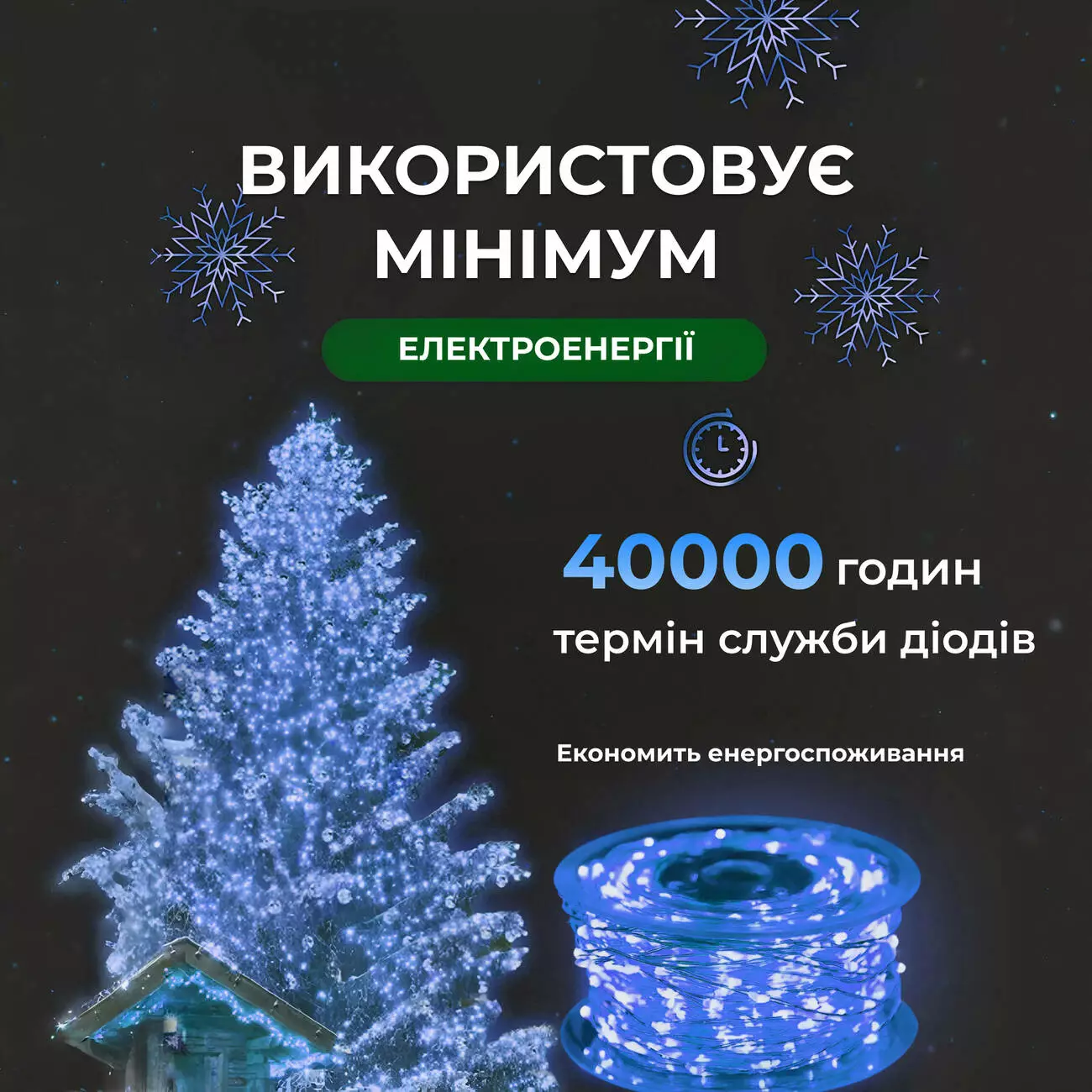 гірлянди – невеликі світлодіоди у формі крапель роси, послідовно