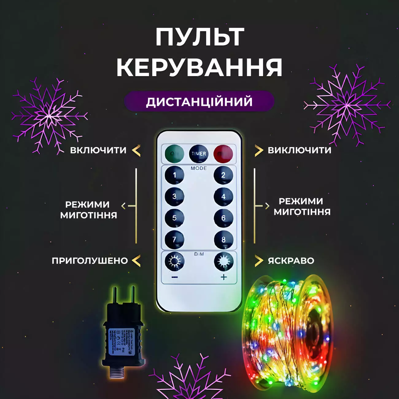 Гірлянда має 8 режимів роботи, перемикатися між якими можна за