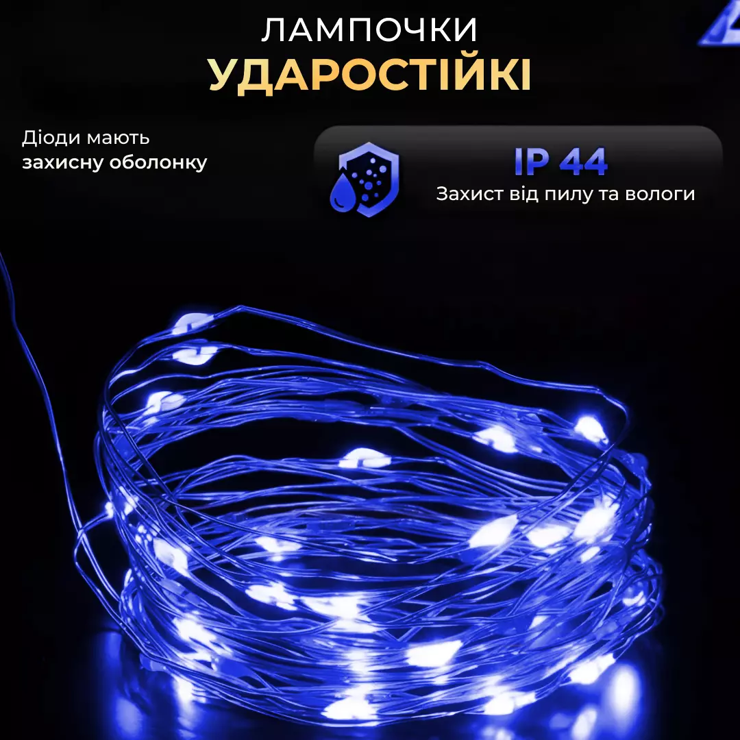 гірлянди – невеликі світлодіоди у формі крапель роси, послідовно
