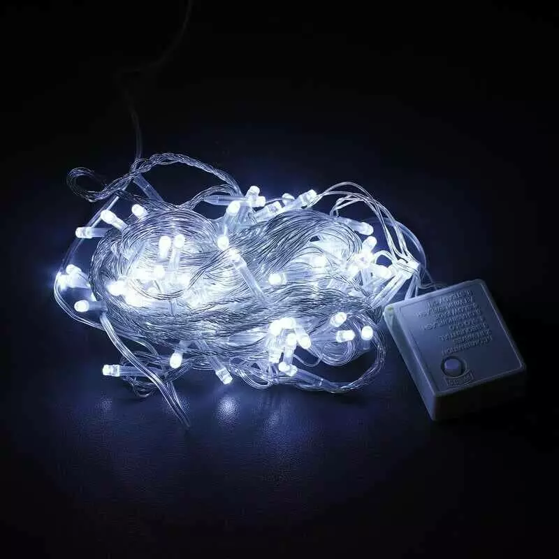 Гірлянда С 54324 (100) 100 лампочок, білий колір світла, 8 режимів, 8м, живлення 220 V, в коробці