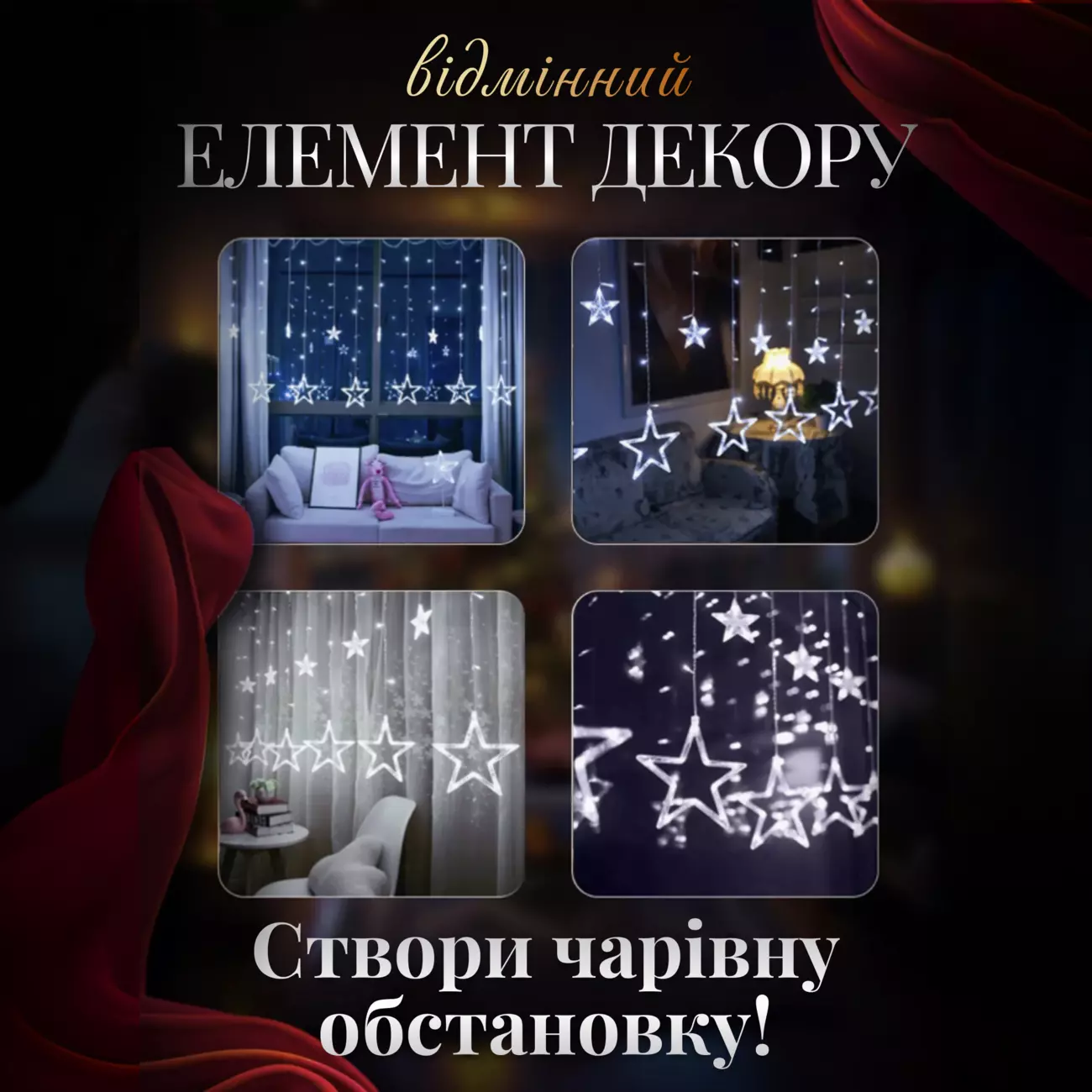 Дванадцять мерехтливих фігур зірок гірлянди "Зірки" створюють