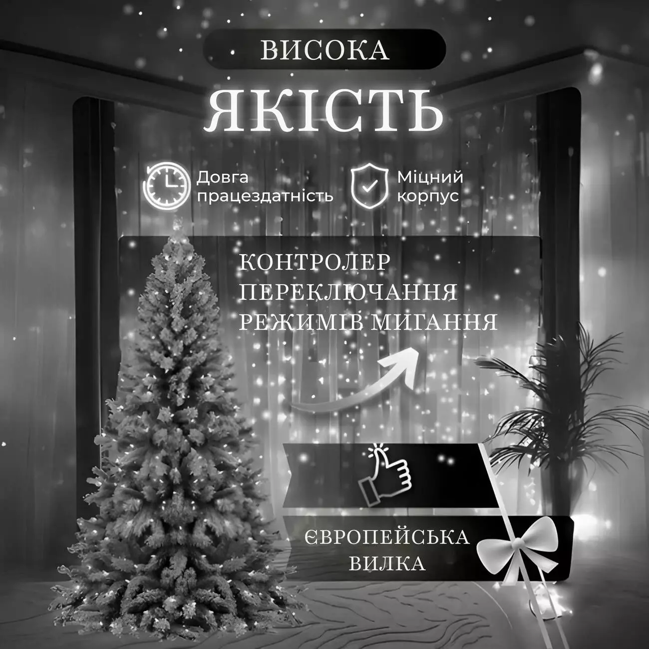 - Чарівний ефект: 270 білих світлодіодів на 10 нитках різної