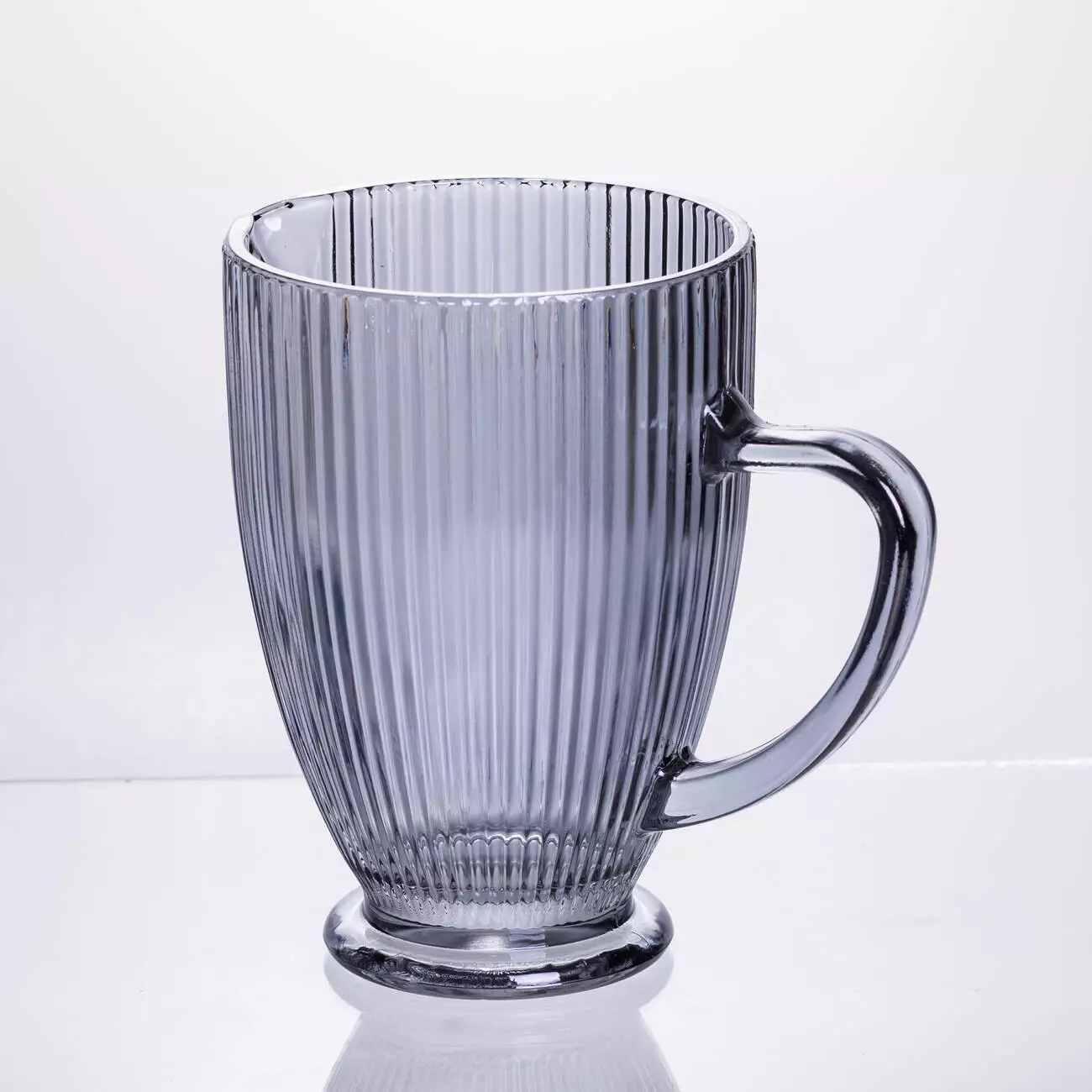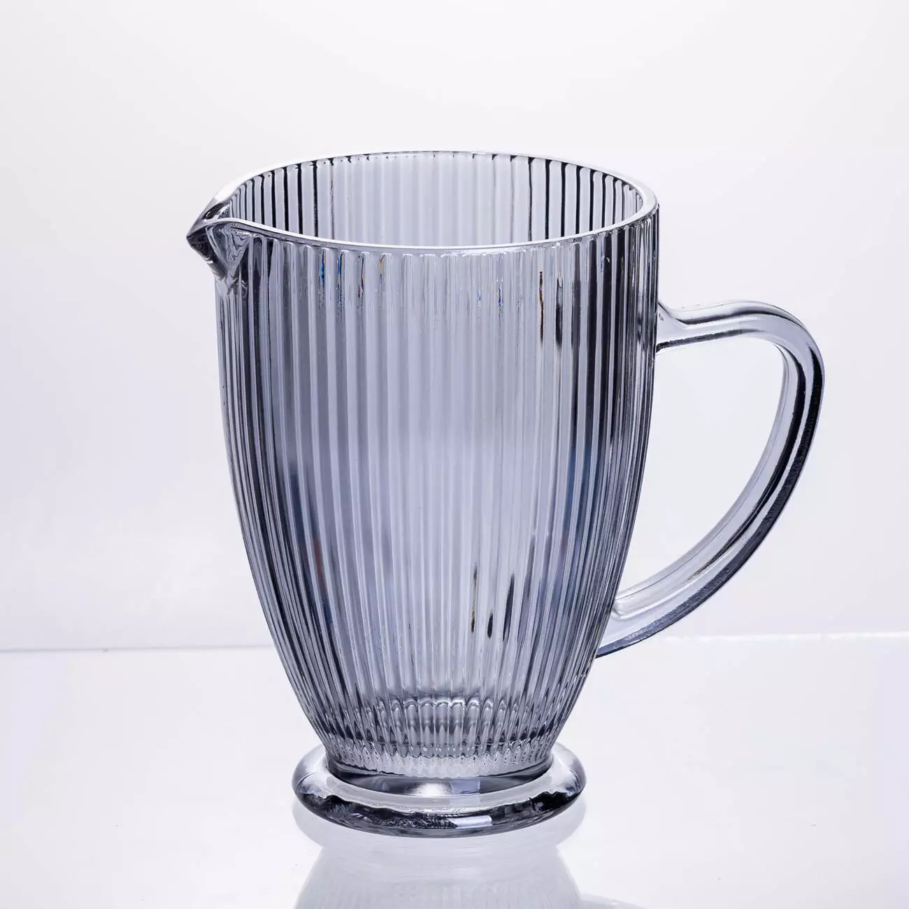 Глечик для напоїв 1,2 л фігурний прозорий ребристий із товстого скла, сірий