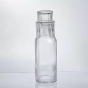 Глечик для напоїв зі склянкою — практичне рішення для щоденного використання вдома, в офісі або в готельних номерах. Виготовлений із товстого, якісного скла, він має ребристу текстуру, що додає естетичності та забезпечує зручність у триманні. Прозора структура скла дозволяє бачити вміст і підкреслює чистоту та свіжість напою.