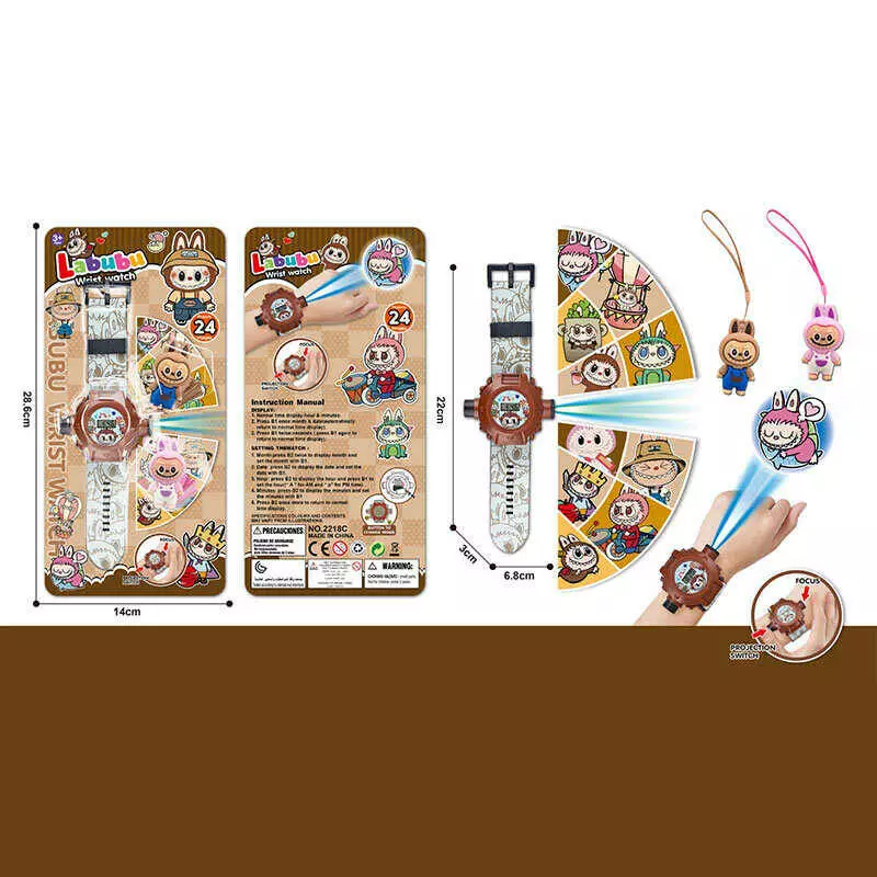 Годинник 2218 C/B/D/2218 (288) герої, проєктор: 24 зображення, 2 гумові фігурки-брелоки, текстильний ланцюжок, на листі