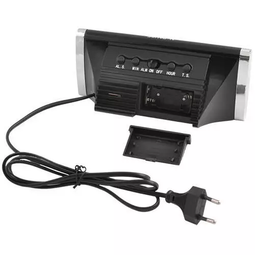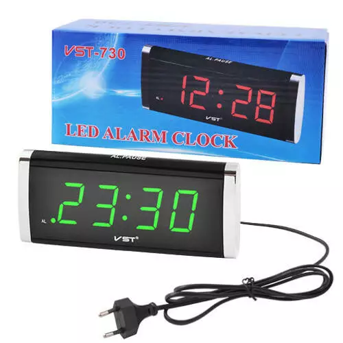 LED-дисплей, будильник (отключение нажатием на часы сверху) , яркий салатовый свет. Функция памяти (запасное питание от 2-ух батареек типа AAA) - не с