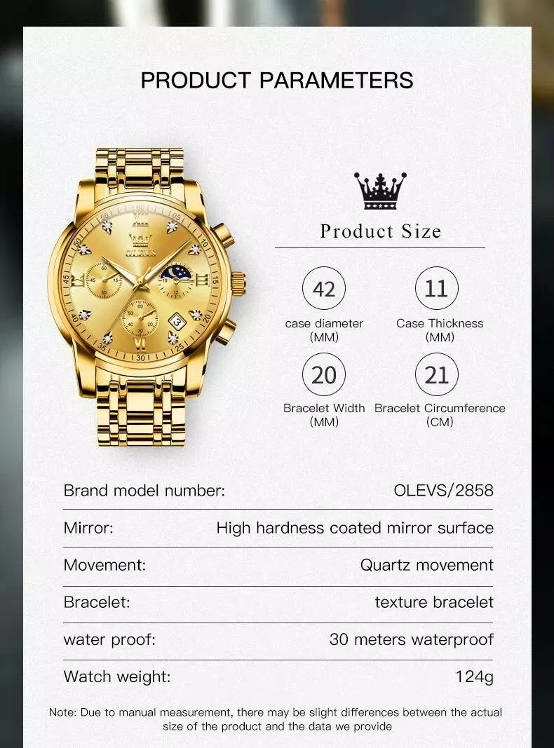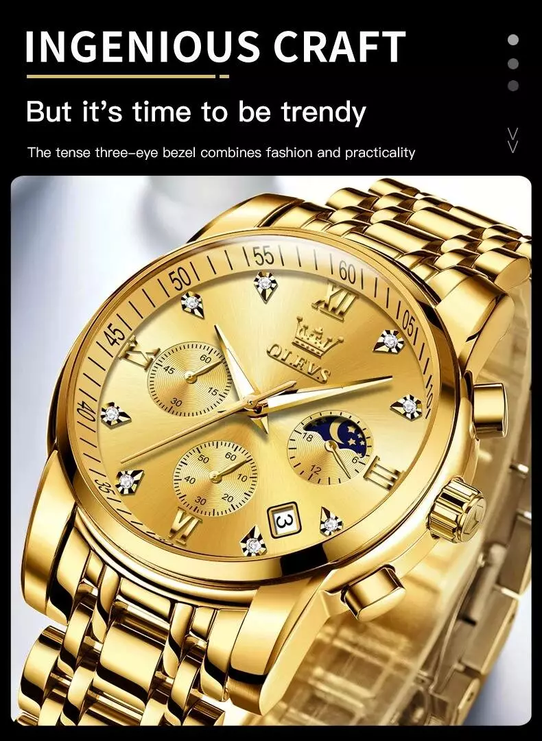 Годинник наручний OLEVS 2858 – поєднання елегантної класики та сучасної функціональності. Він ідеально підійде як для ділових зустрічей, так і для повсякденного носіння. Завдяки японському кварцовому механізму забезпечується точний хід. Унікальний хронограф з трьома додатковими циферблатами дозволяє ефективно контролювати час. Підсвічування стрілок активується після 30-40 секунд під яскравим світлом, забезпечуючи зручне читання вночі. Корпус з нержавіючої сталі і міцне мінеральне скло Hardlex захистять гаджет від подряпин і дрібних ударів. Водозахист 3 ATM дозволяє не знімати годинник під час дощу або миття рук.