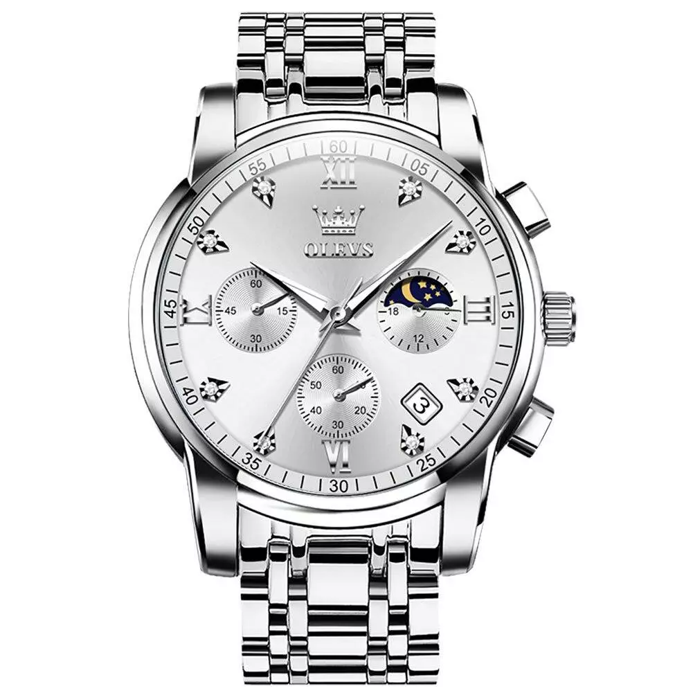 Годинник наручний OLEVS 2858 – поєднання елегантної класики та сучасної функціональності. Він ідеально підійде як для ділових зустрічей, так і для повсякденного носіння. Завдяки японському кварцовому механізму забезпечується точний хід. Унікальний хронограф з трьома додатковими циферблатами дозволяє ефективно контролювати час. Підсвічування стрілок активується після 30-40 секунд під яскравим світлом, забезпечуючи зручне читання вночі. Корпус з нержавіючої сталі і міцне мінеральне скло Hardlex захистять гаджет від подряпин і дрібних ударів. Водозахист 3 ATM дозволяє не знімати годинник під час дощу або миття рук.