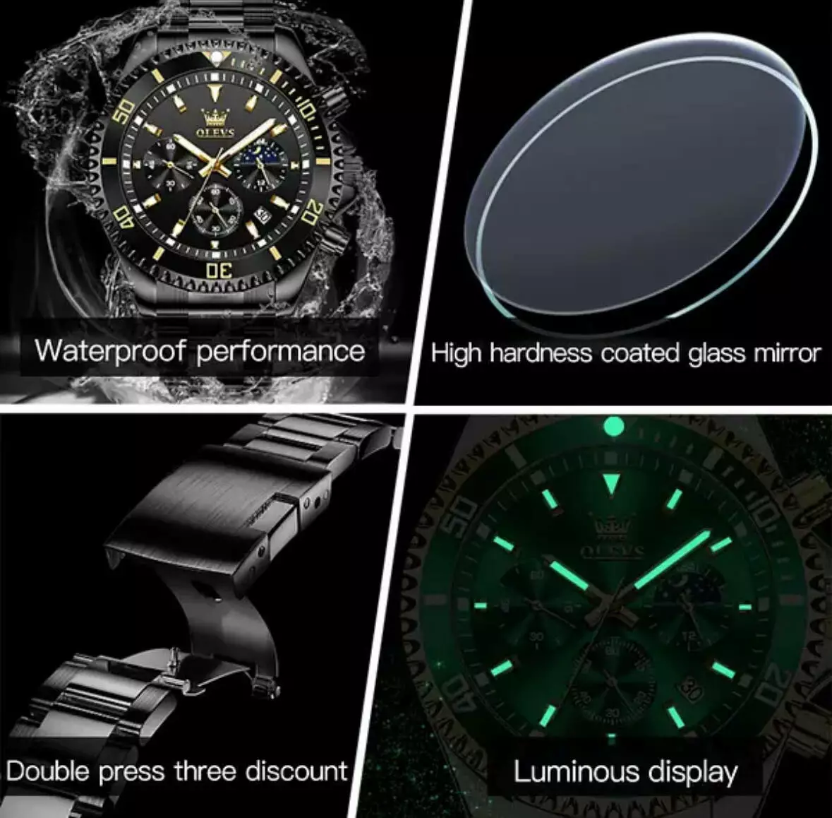 Годинник наручний OLEVS 2870 – елегантний і функціональний хронограф, який поєднує преміальний вигляд і практичність. Його корпус і браслет з нержавіючої сталі виглядають значно дорожче, ніж коштують. Японський імпортний кварцовий механізм гарантує точний хід, а водозахист 3 ATM дозволяє не знімати годинник під час миття рук або під час дощу. У комплекті йде стильна бежева фірмова коробка – відмінний варіант подарунка.