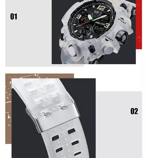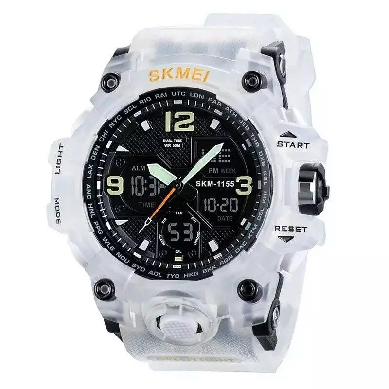 Годинник наручний Skmei 1155BWT — це стильний і багатофункціональний наручний годинник, який чудово підійде для активних чоловіків, що цінують зручність, надійність і сучасний дизайн. Модель поєднує класичний аналоговий механізм зі зручним цифровим дисплеєм, завдяки чому ви отримуєте одразу два формати відображення часу. Годинник має масивний пластиковий корпус у білому кольорі з чорним циферблатом і білий м’який ремінець із приємного на дотик полімерного матеріалу. Такий контраст виглядає стильно та неординарно, роблячи аксесуар яскравим акцентом у вашому образі. Незалежно від того, чи ви у місті, в спортзалі або на природі — Skmei 1155BWT виглядає доречно та ефектно.