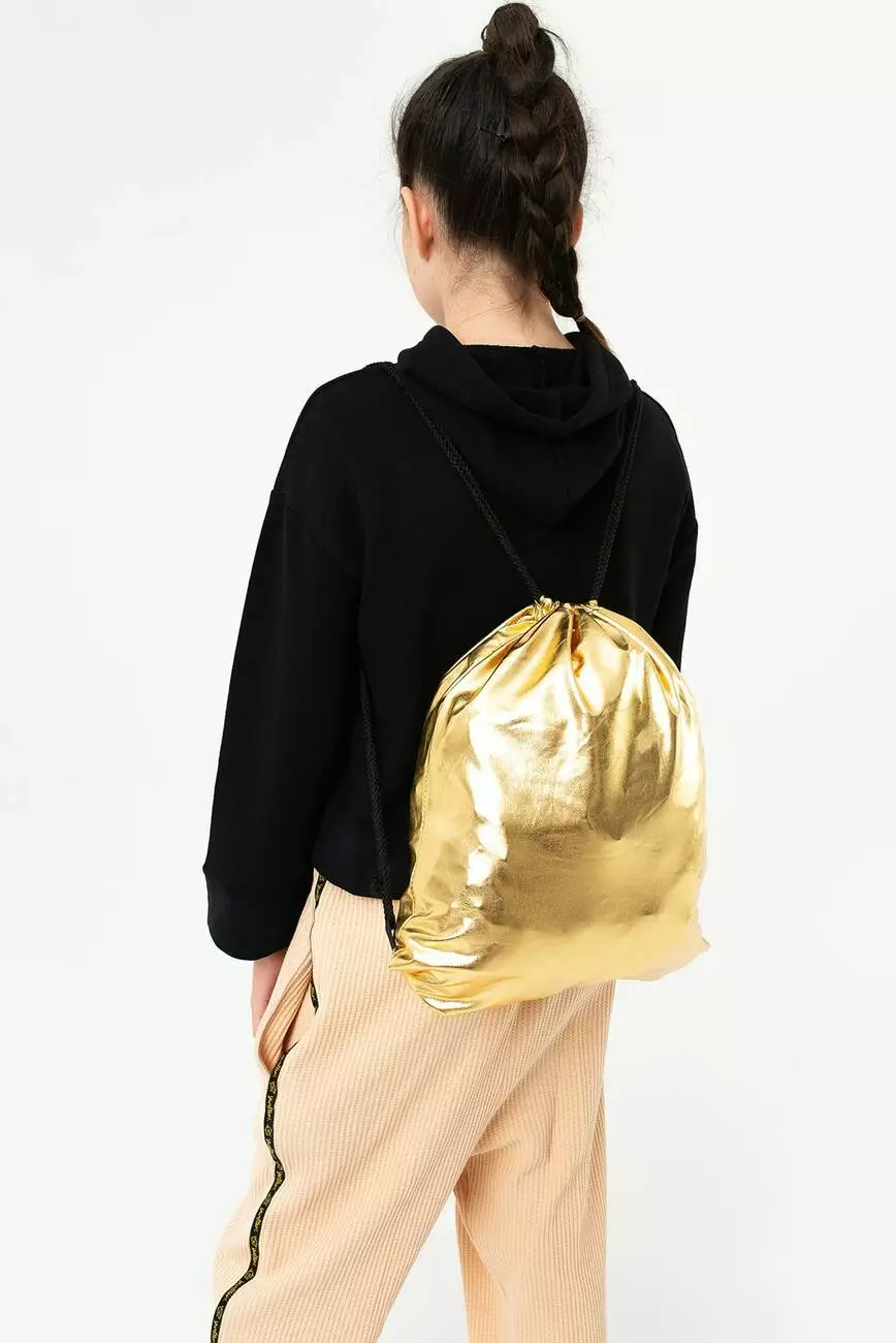 Крутий вмісткий рюкзак золотого кольору на шнурках. Підійде для дітей будь-якого віку. З таким рюкзаком можна ходити на пікнік, в спортзал та навіть в школу. Лаконічний дизайн підкреслить ваш смак і відчуття стилю навіть в таких звичайних речах.
