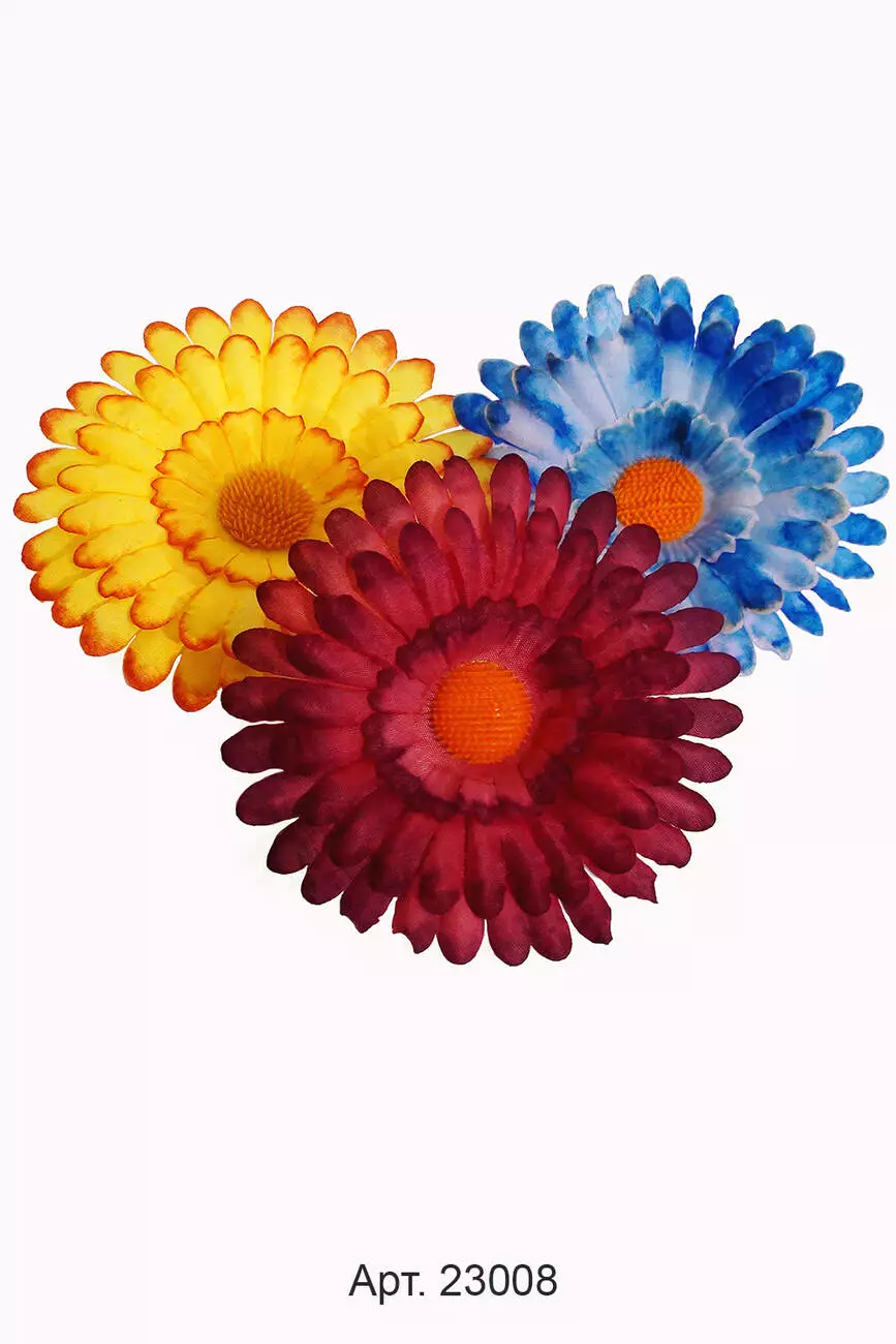 Штучна голова гербери з шовку діаметром 11 см. У прозорій фабричній упаковці зібрані 50 шт однакового забарвлення.