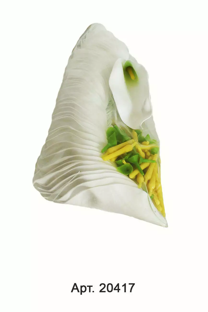 висота бутона 13,5 см, висота рослини 16 см. У прозорій фабричній