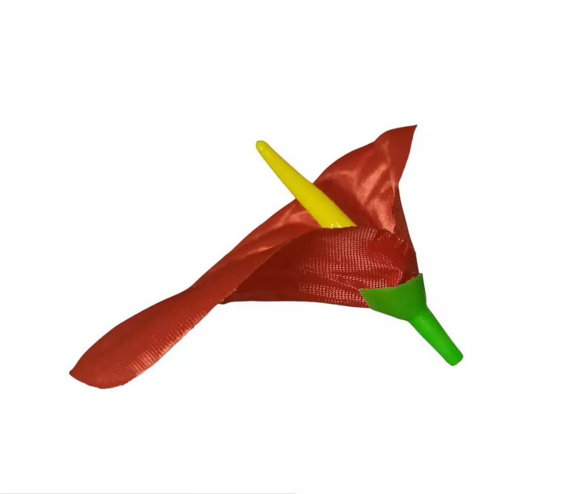 Штучна голова кали з атласу висотою 13 см. У прозорій фабричній упаковці зібрані 100 шт однакового забарвлення.