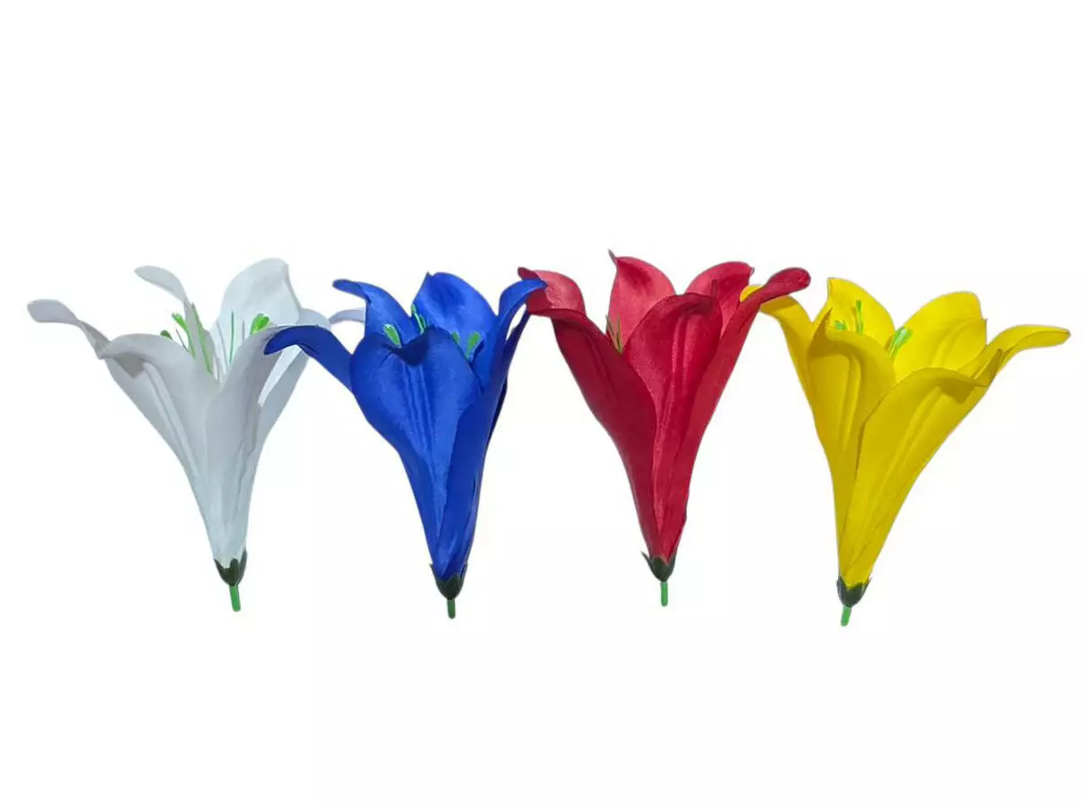 Голова штучна лілія з щільної бавовни, діаметр 14 см, довжина бутона 15 см. В упаковці 25 шт одного кольору.